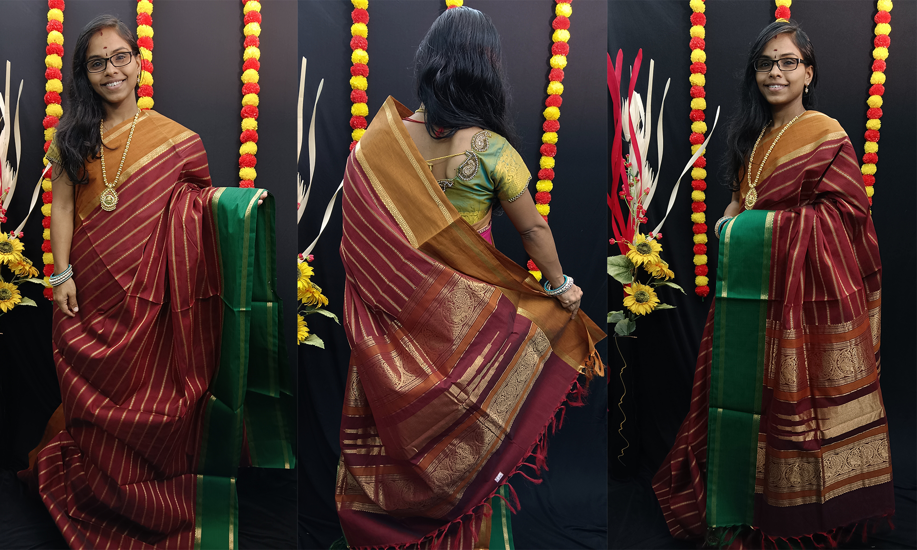Our Chettinad cotton sarees come in a variety of colors, patterns, and designs to suit every taste and occasion. From simple and elegant designs for everyday wear to elaborate and festive sarees, we have a wide range to choose from.In addition to its comfort and beauty, Chettinad cotton sarees also have environmental benefits. As the cotton used is hand-woven and organic, it is sustainable and eco-friendly.