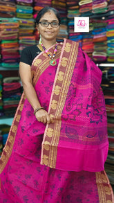 The purest cotton sarees are made in Chettinad, the best part is the wonderful woven borders and Prints on the body. Where the pallu is woven with Printed Grand Pallu.