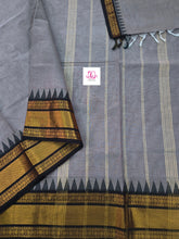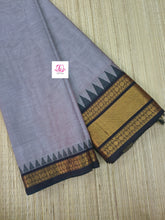 This saree comes with beautiful Kanchipuram style gold/copper zari woven borders on Kanchi cotton and Plain body . Pallu has simple and elegant stripes . These sarees are a fusion of Chettinad Cottons sarees with Kanchivaram-style copper/gold zari woven borders.