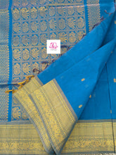 This saree comes with beautiful Kanchipuram style gold/copper zari woven borders on Kanchi cotton and Butta on the body . Pallu has comes grand pallu. These sarees are a fusion of Chettinad Cottons sarees with Kanchivaram-style copper/gold zari woven borders.