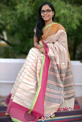 Shubhavastram - Heritage Handwoven cotton-Veldhari -light sandal -07