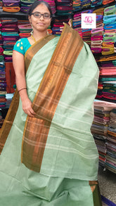 This saree comes with beautiful Kanchipuram style gold/copper zari woven borders on Kanchi cotton and Plain body . Pallu has simple and elegant stripes . These sarees are a fusion of Chettinad Cottons sarees with Kanchivaram-style copper/gold zari woven borders.