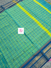 Kandangi Korvai Checks Butta-Lemon yellow mixed blue dual tone- KKCB72
