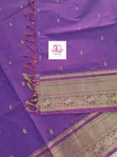 This saree comes with beautiful Kanchipuram style gold/copper zari woven borders with attractive grand . Pallu . These sarees are a fusion of Chettinad Cottons sarees with Kanchivaram-style copper/gold zari woven borders.