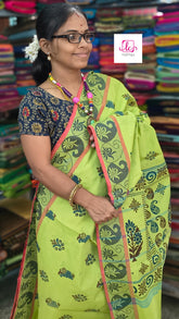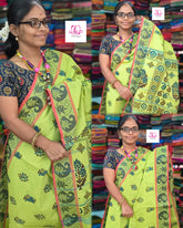 The purest cotton sarees are made in Chettinad, the best part is the wonderful woven borders and Prints on the body. Where the pallu is woven with Printed Grand Pallu.