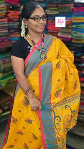The purest cotton sarees are made in Chettinad, the best part is the wonderful woven borders and Prints on the body. Where the pallu is woven with Printed Grand Pallu.